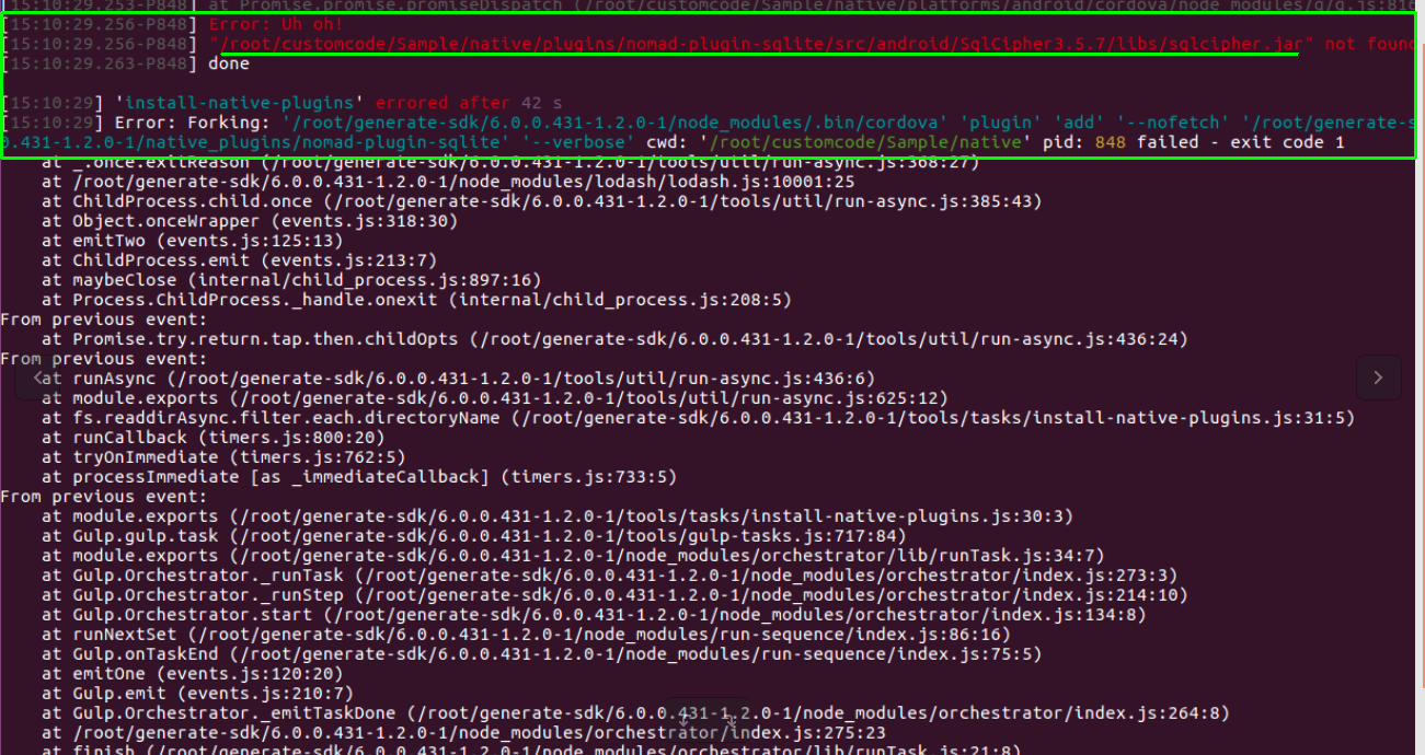 [10:45:26.091-P14394] "/root/generate-sdk/6.0.0.431-1.2.0-1/sdk/native/plugins/nomad-plugin-sqlite/src/android/SqlCipher3.5.7/libs/sqlcipher.jar" not found!