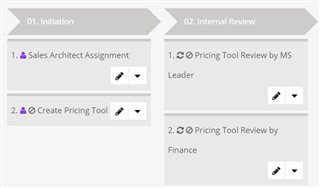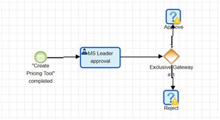 I'm looking for help with making SugarBPM work with Customer Journey. We have a Customer Journey shown in "CS screenshot", where the completion of a task called "Create Pricing Tool" triggers the next task called "Pricing Tool Review by MS Leader". I'm trying to automate this step in such a way that, if the review in "Pricing Tool Review by MS Leader" step is approved, then the step "Pricing Tool Review by MS Leader" is marked as Complete and the next activity called "Pricing Tool Review by Finance" is started. If the review is rejected, then the process reopens the previous step, "Create Pricing Tool", and notifies the assigned-to user of the previous step.
