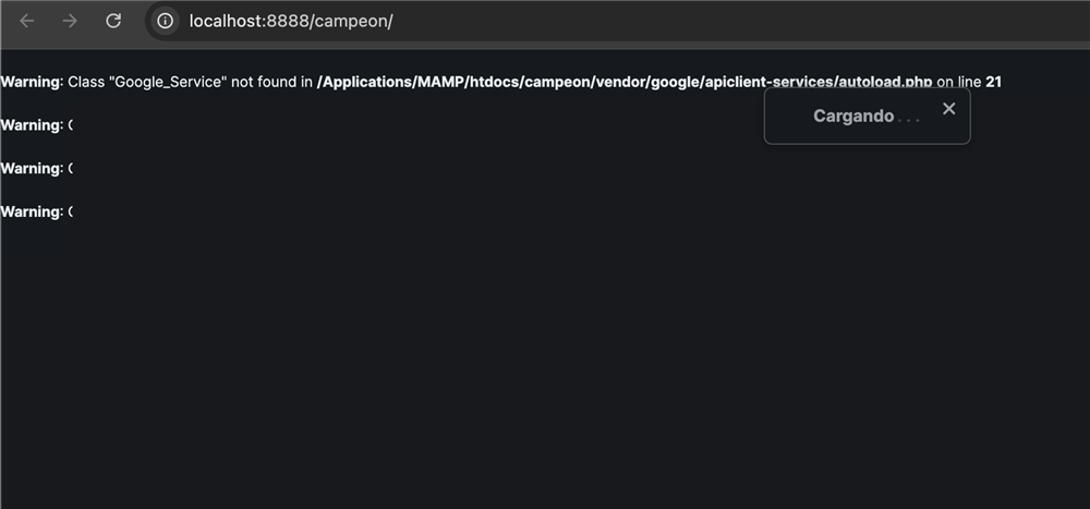 The config.php, config_override.php, and .htaccess files were shared with me by the team and have the necessary permissions. The problem is that when I load the environment, this happens: