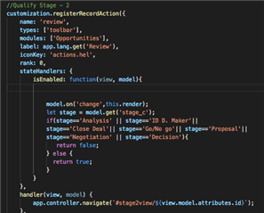 We have got a “Save” button in the custom view, on click of Save button we are updating an opportunity. [Screen Shot 2].