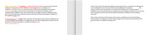 I am creating a docmerge template with a lot of if/else conditions using || for or and && for and conditions in it. I am testing in sections and have noticed that the if/else isnt working and the if and else tags are being left in the rendered document. Is there something wrong in the coding i have set up? or is this a bug? Screenshot below of the codeing on the left and result on the left.