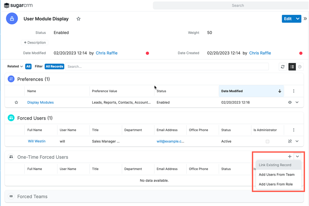 Great question! When adding users for one-time enforcement of a preference set, you can choose link individual records or all users from a given team or role: