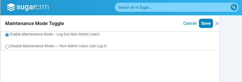 For SugarCloud customers, enabling maintenance mode requires raising a support case, as there’s no built-in UI option for it.