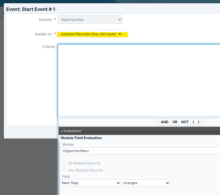 We would like to create a task via BPM and assign it to the person assigned to the opportunity whenever the content in the “Next Step” field of an opportunity is changed.