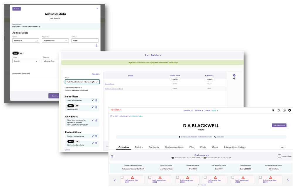 Custom sales analysis Pre-built sales insights AI-powered recommendations Real-time sales alerts