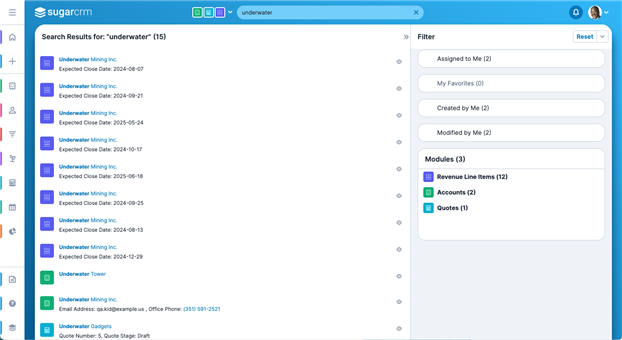 Enhanced Forecasting & Service Insights Focus Drawers now open when drilling into charts or dashlets Chart colors in Discover Dashlets have been updated for enhanced consistency between Discover and Sugar reports