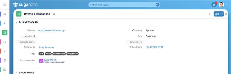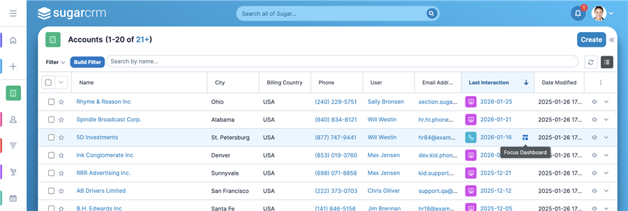 Sell & Serve Highlights These are just some of the new features and experiences available in Sugar Sell & Serve. Track account interactions with the new "Last Interaction" field